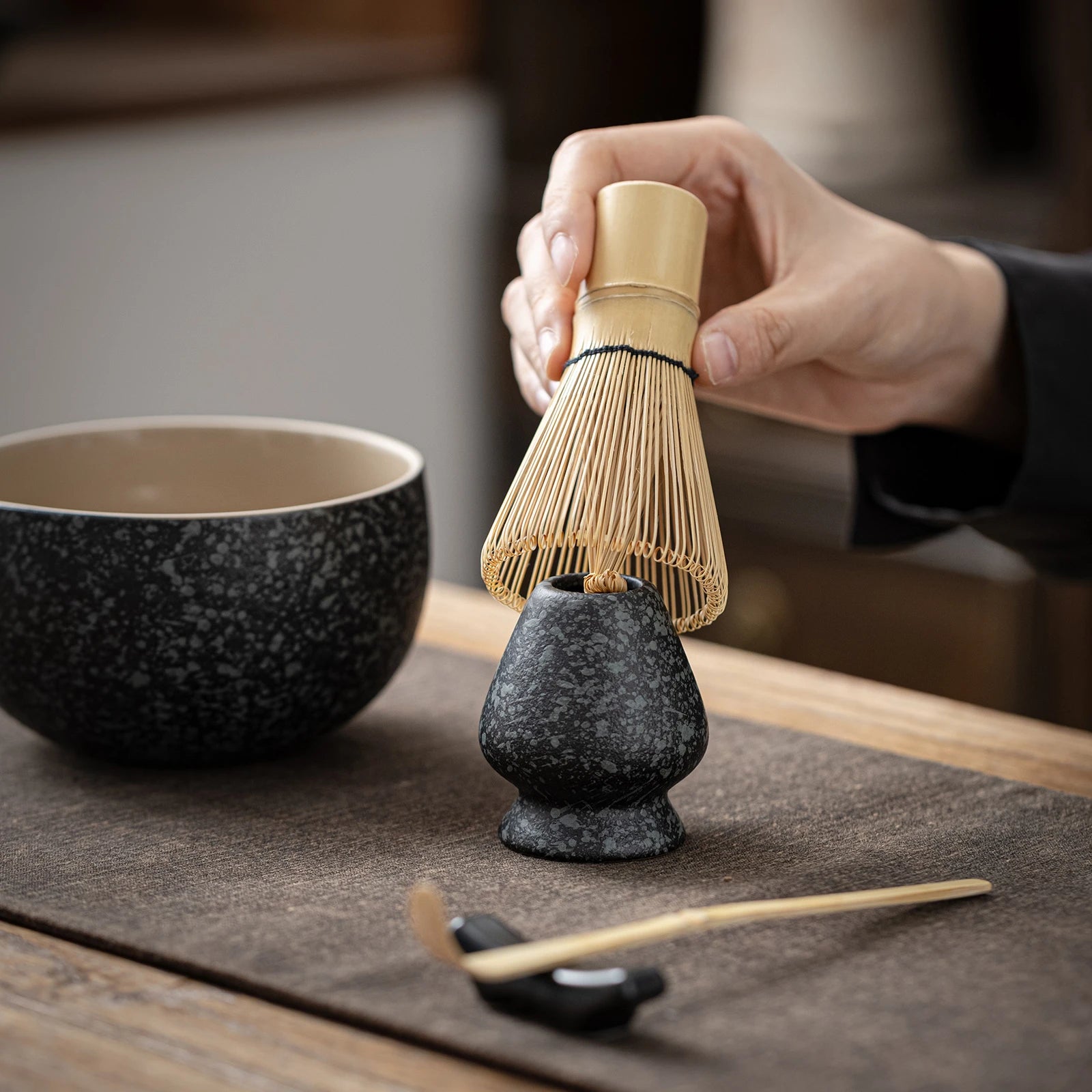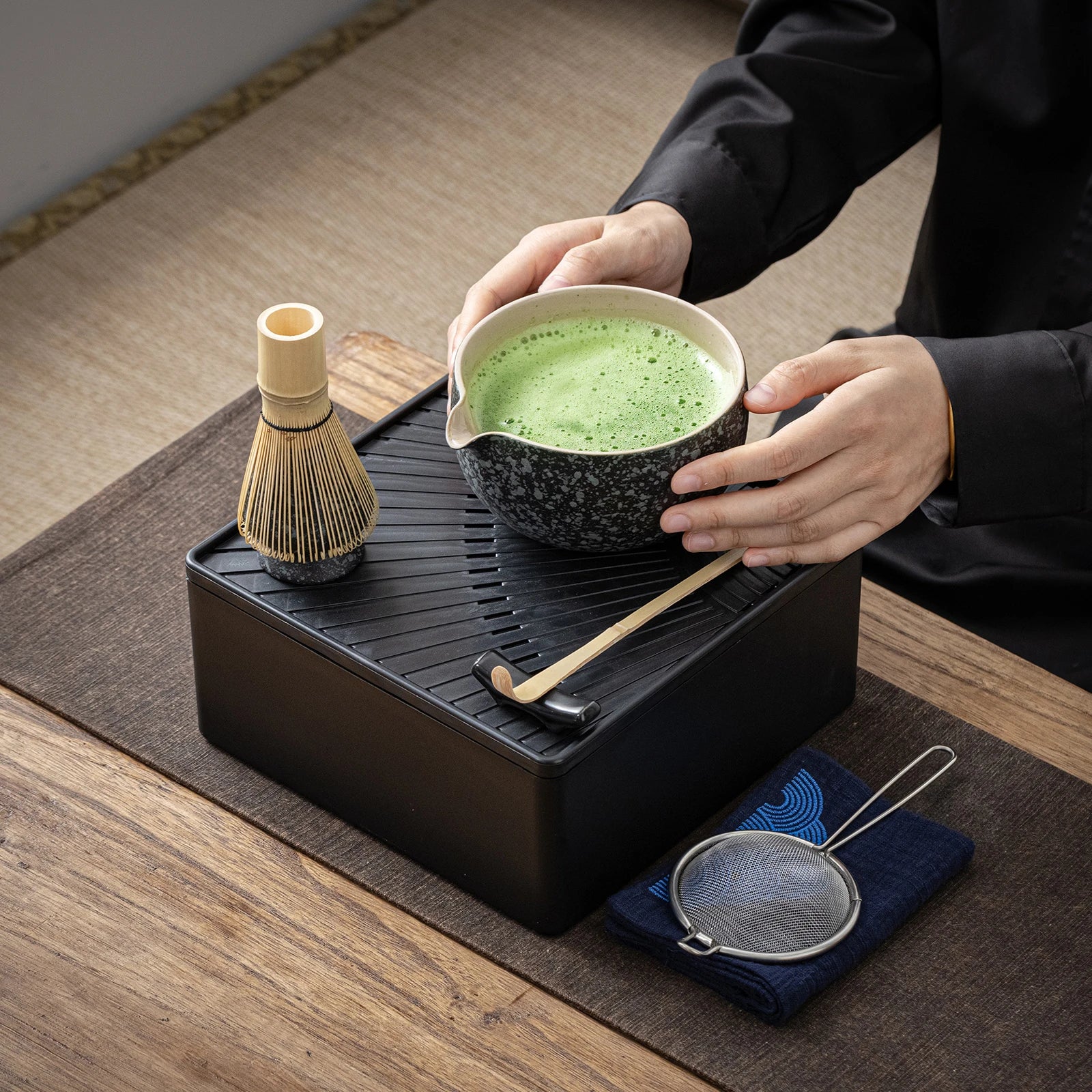 Home Matcha Ceremony Matcha Set-Beginner Travel Set Obsidian with Leather Bag