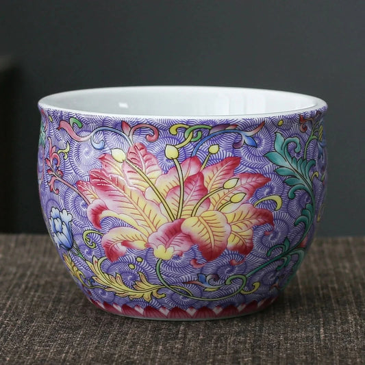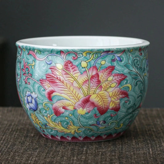 Taza de té esmaltada con peonía verde de 100 ml