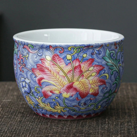 Taza de té de peonía esmaltada azul de 100 ml