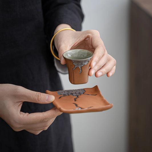 Tapete de taza ZEN con escritura antigua en tonos tierra